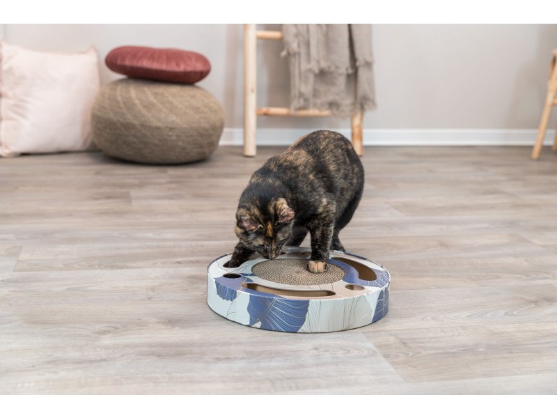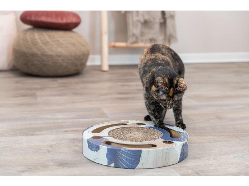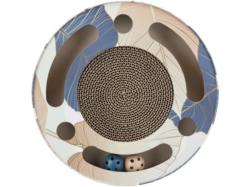 Напольная игрушка-когтеточка из гофрокартона с двумя мячиками внутри поможет кошке удовлетворить естественную потребность в стачивании когтей, не нанося ущерба Вашей мебели, а также будет мотивировать кошку к игре.