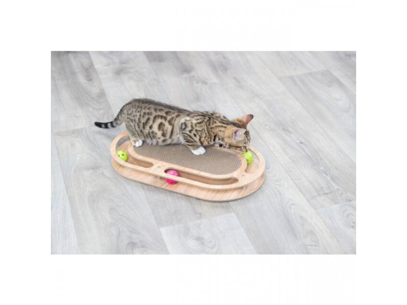 Картонная когтеточка в корпусе из МДФ, с 4-мя пластиковыми шариками, поможет уберечь мебель и развлечет Вашу кошку, пока Вас нет дома.