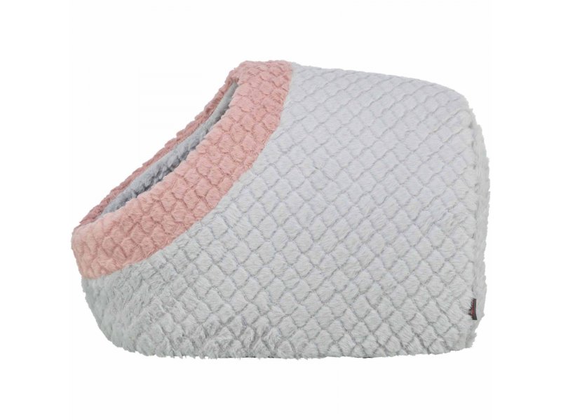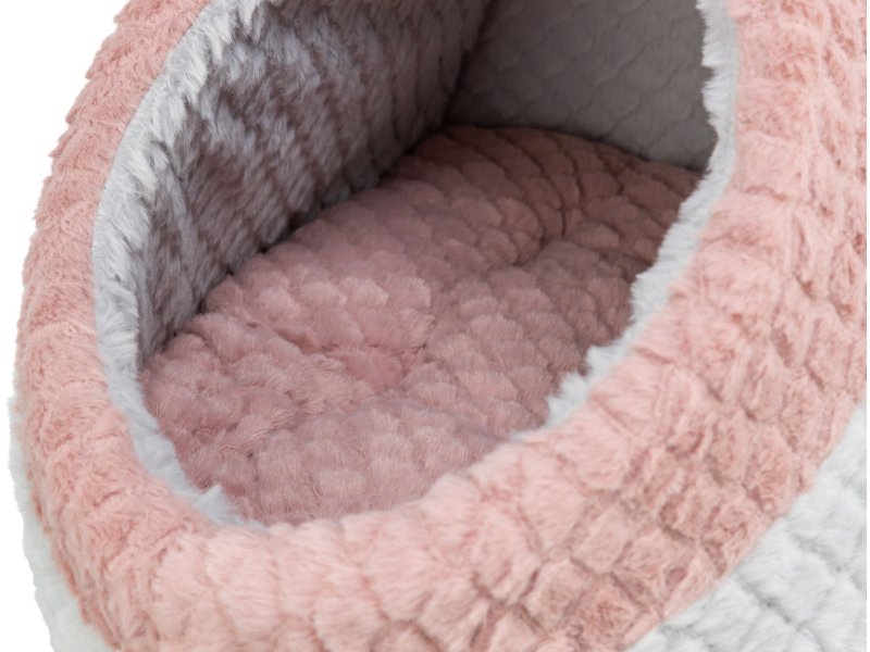 Цветовое сочетание серого и розового делает домик-лежак стильным элементом интерьера, гармонично вписываясь в разные стили оформления дома. Размер 35×26×41 см подходит для небольших и средних животных, обеспечивая им достаточно пространства для комфортного отдыха.