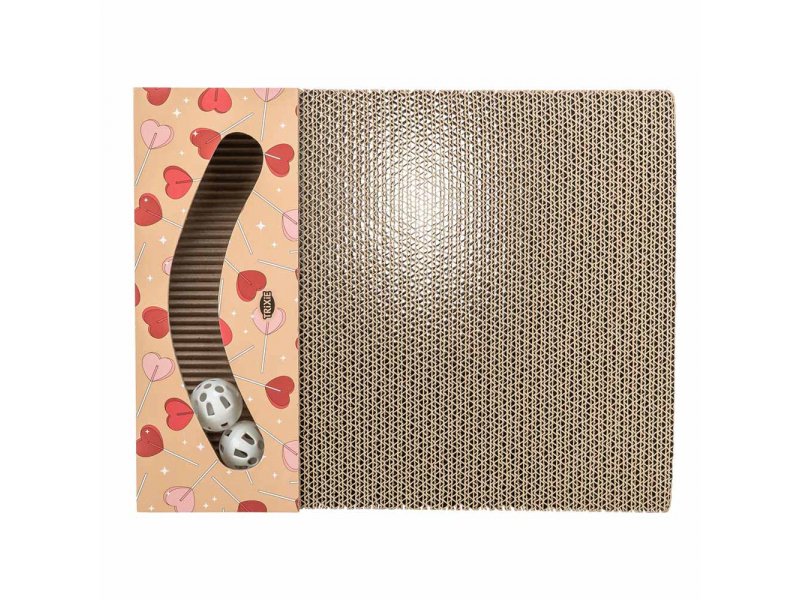 Когтеточка Trixie Valentine из картона с мячиками — оригинальная праздничная когтеточка ко дню Святого Валентина, которая станет для вашей кошки удобным местом для стачивания когтей и веселых игр. Лимитированная серия выполнена из прочного гофрированного картона, имеет нежный романтичный оттенок и дополнена двумя встроенными мячиками, которые поддерживают интерес питомца и побуждают его к активности. В комплекте предусмотрена кошачья мята (catnip), благодаря которой когтеточка становится еще более привлекательной для кошки. Размер изделия — 38 × 5 × 30 см, поэтому оно не занимает много места, но отлично подходит для ежедневного использования.