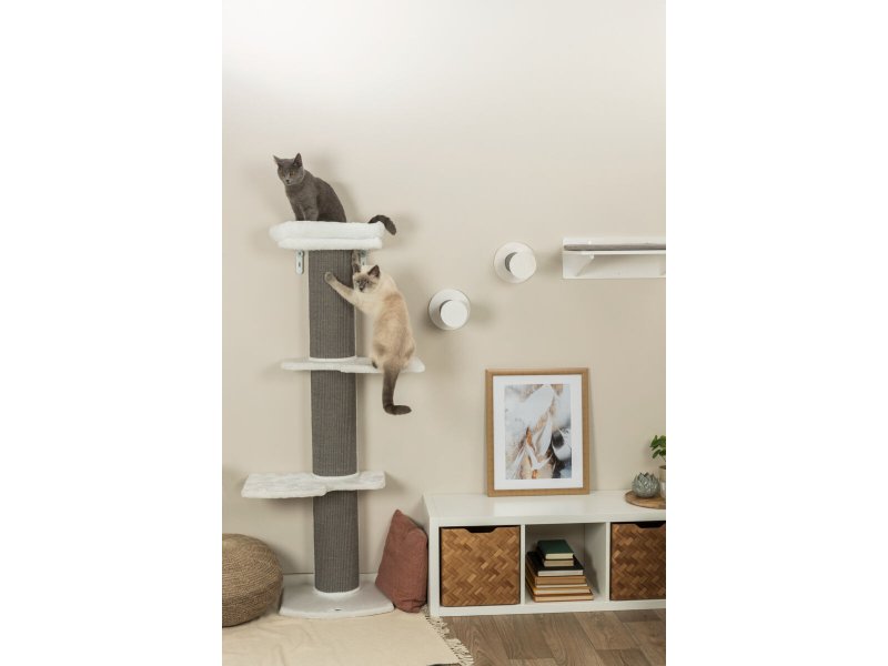 Столбик покрыт сизалем. Сизаль - это натуральное волокно поразительной прочности, которое получают из листьев специального дерева при помощи особенной технологии. Впервые сизаль начали использовать при строительстве парусников, а теперь и Ваш питомец сможет испытать этот материал на прочность своими острыми коготками.