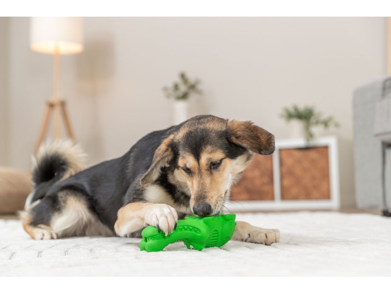 Модель в форме крокодила привлекает внимание благодаря интересному дизайну и яркому зелёному цвету, что делает её привлекательной для питомцев разных пород. Она подходит для собак средних и крупных размеров, которым нужна дополнительная умственная стимуляция и физическая активность.