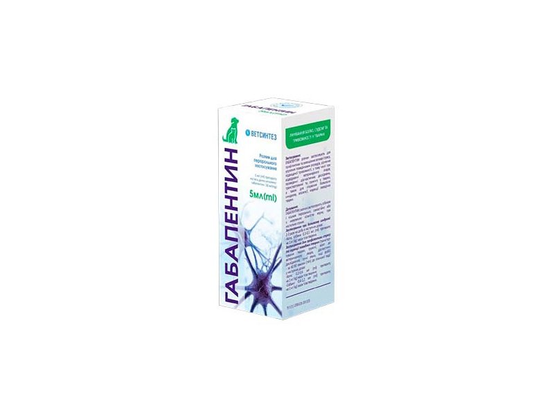 После применения внутри собакам и котам максимальная концентрация в плазме крови достигается через 2-3 часа. Период полувыведения у собак и кошек составляет 6–8 часов. Абсолютная биодоступность габапентина составляет около 60%. Прием корма не влияет на фармакокинетику препарата. Фармакокинетика не меняется при повторном применении.