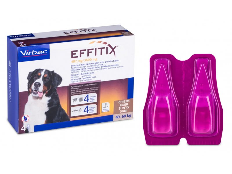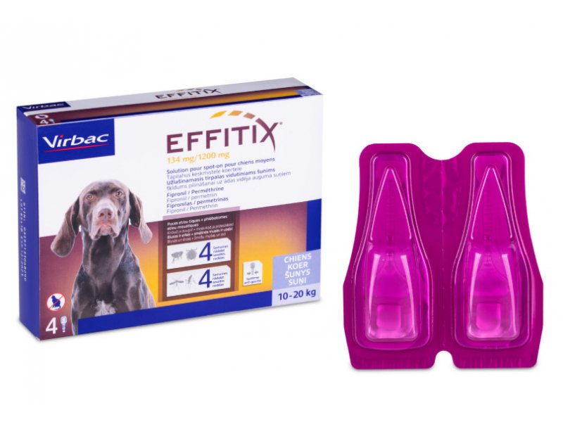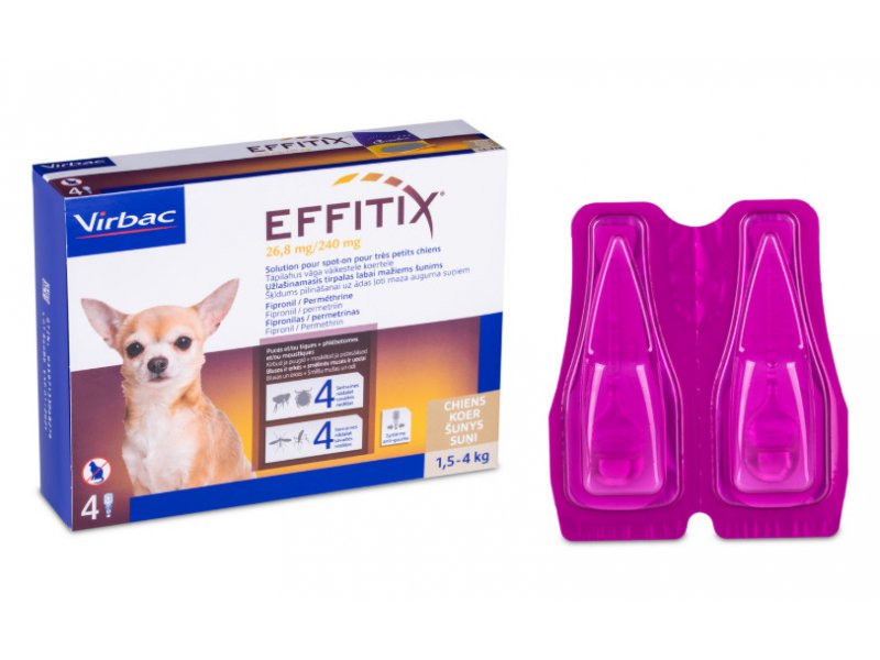Гибель паразитирующих на собаке насекомых и клещей происходит в течение суток после обработки. После однократной обработки защитное действие Эффитикса сохраняется до 4 недель.