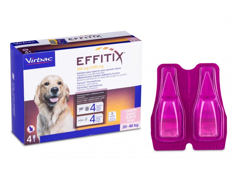 Капли Virbac Effitix от блох, клещей и комаров для взрослых собак и щенков с 8-недельного возраста.