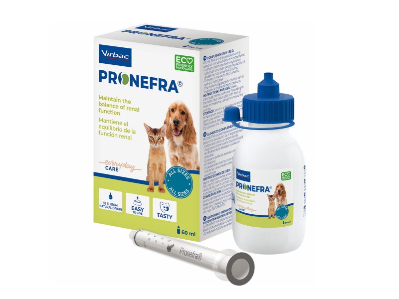 Pronefra - пероральная суспензия для кошек и собак, которая поддерживает почечную функцию в случае хронической почечной недостаточности.