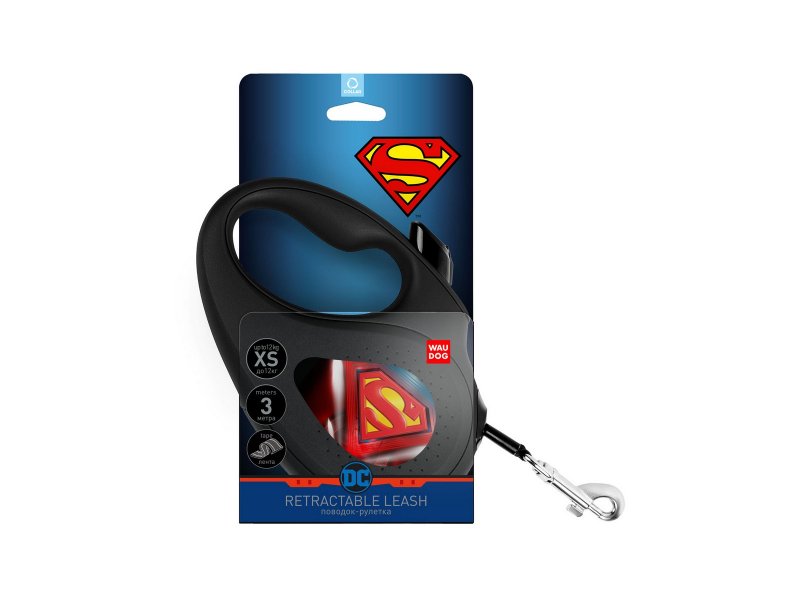 Поводок-рулетка для собак WAUDOG R-leash, рисунок "Супермен Лого" Поводок-рулетка от WAUDOG - это уникальный дизайн рисунков, удобный функционал и надежная конструкция. Эргономичная ручка идеально подходит для длительных прогулок.