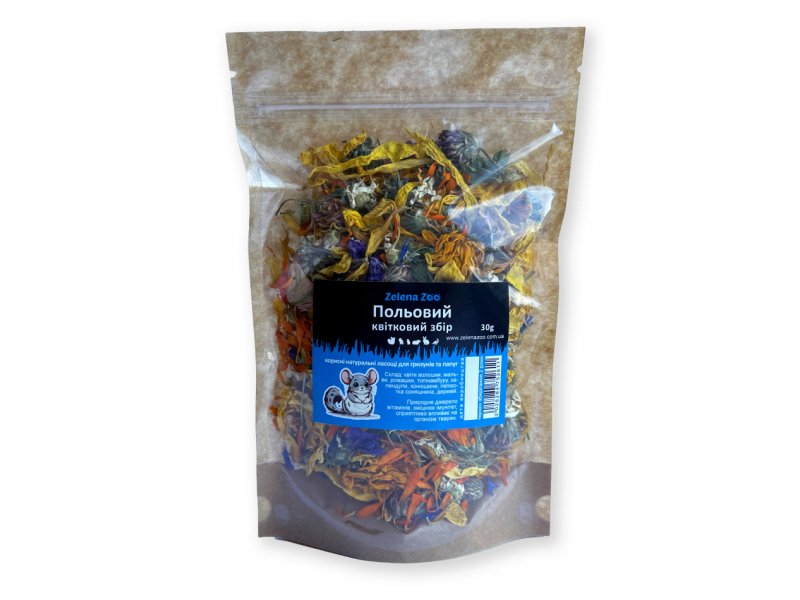 Полевой цветочный сбор 30 г Zelena Zoo - это всесторонний природный уход за здоровьем и благополучием грызунов и попугаев, одновременно стимулирующий их умственную активность и повышающий качество их жизни.
