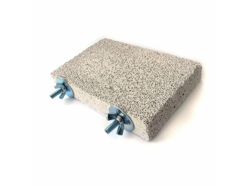 Полка из пемзы для шиншилл 15*10*2,5 см Zelena Zoo - это полка-поверхность для лазания и отдыха, а также для грызения и сточки зубов толщиной 25 мм из камня-пемзы подходит для любых клеток, т.к. имеет два металлических крепления, которые зажимают прутья клетки между металлической гайкой с шайбой.