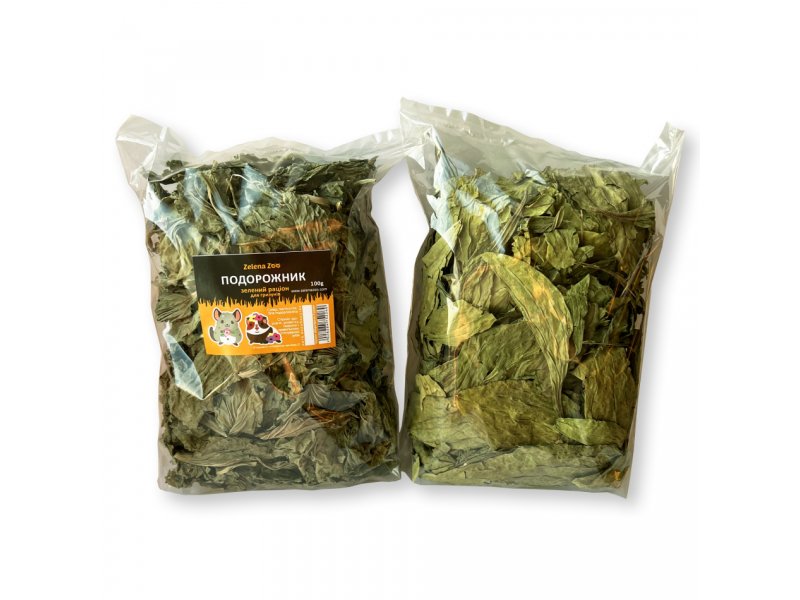 Подорожник ЗЕЛЕНЫЙ РАЦИОН для грызунов 100 г Zelena Zoo – ароматная смесь прямо из природы. Сбалансированная, богатая смесь трав и листьев – это здоровое дополнение к ежедневному рациону грызунов. Сушеные травы – настоящая слабость для ваших травоядных, что обеспечивает отличное пищеварение и правильную сточку зубов. Здоровая диета, богатая клетчаткой каждый день. Зеленый рацион Подорожник не только отлично пахнет, но и является важной частью меню. Природные ингредиенты для правильного сбалансированного и здорового питания грызунов.