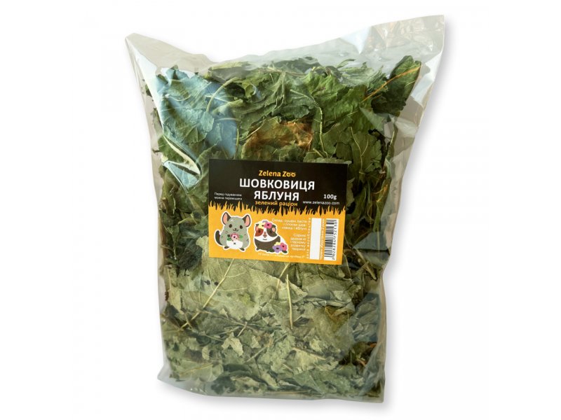 Шелковица/Яблоня ЗЕЛЕНЫЙ РАЦИОН для грызунов 100 г Zelena Zoo - здоровое удовольствие на каждый день. Содержит сбалансированную смесь витаминов и микроэлементов. Зеленый рацион Шелковица/Яблоня не только прекрасно пахнет, но и является важной частью меню.