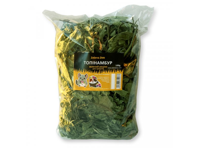 Топинамбур ЗЕЛЕНЫЙ РАЦИОН для грызунов 100 г Zelena Zoo – ароматная смесь прямо из природы. Сбалансированная, богатая смесь трав и листьев – это здоровое дополнение к ежедневному рациону грызунов. Сушеные травы – настоящая слабость для ваших травоядных, что обеспечивает отличное пищеварение и правильную сточку зубов. Здоровая диета, богатая клетчаткой каждый день. Зеленый рацион Топинамбур не только отлично пахнет, но и является важной частью меню. Природные ингредиенты для правильного сбалансированного и здорового питания грызунов.
