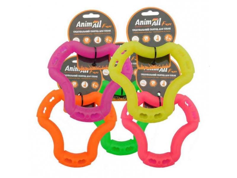 Іграшка-кільце AnimAll Fun виконана з шістьма зручними гранями, завдяки яким собаці легко захоплювати її щелепами під час гри. Виріб виготовлений з натурального каучуку, відрізняється підвищеною міцністю і є гіпоалергенним, що робить його безпечним для вихованця. Іграшка відмінно підходить для активних ігор на вулиці і не тоне у воді. Приємний ванільний аромат привертає увагу собаки і допомагає надовго зберегти інтерес до іграшки. Ергономічна форма комфортна для щелепи, не пошкоджує зуби і ясна під час жування. Різноманітність розмірів дозволяє підібрати оптимальний варіант з урахуванням габаритів і сили щелепи вихованця. Іграшки цього бренду відрізняються яскравим, стильним дизайном і сприяють гарному настрою та активному дозвіллю собаки.