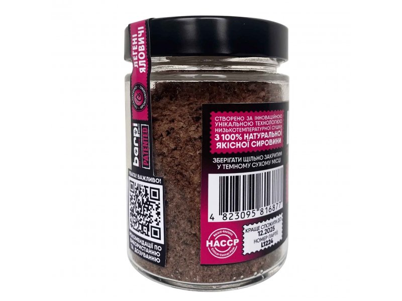 Технологія виробництва: Завдяки використанню передових космічних технологій, продукт не піддається термічній обробці, що дозволяє зберегти максимальну кількість корисних речовин.