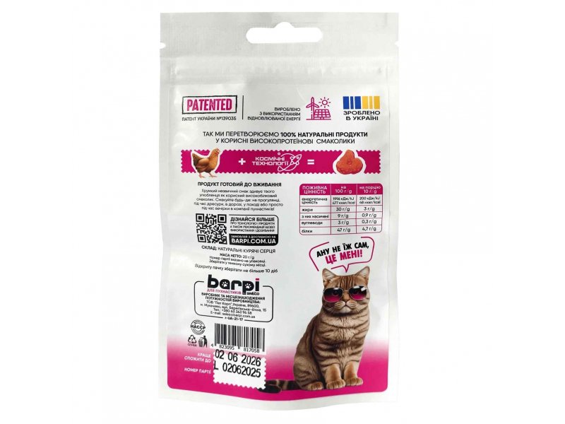 Barpi «Серденька курячі» — це смачна й корисна нагорода, яку ваш улюбленець полюбить із першого шматочка.
