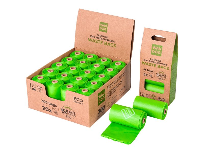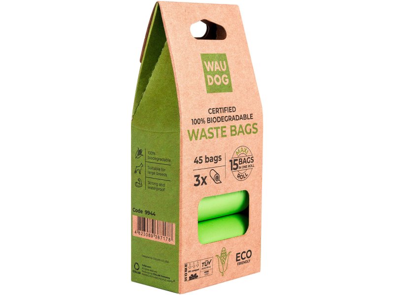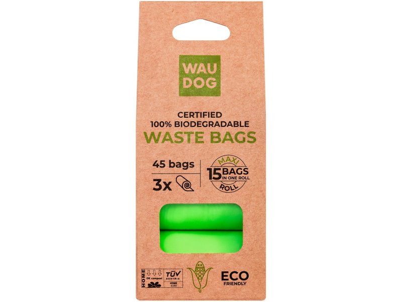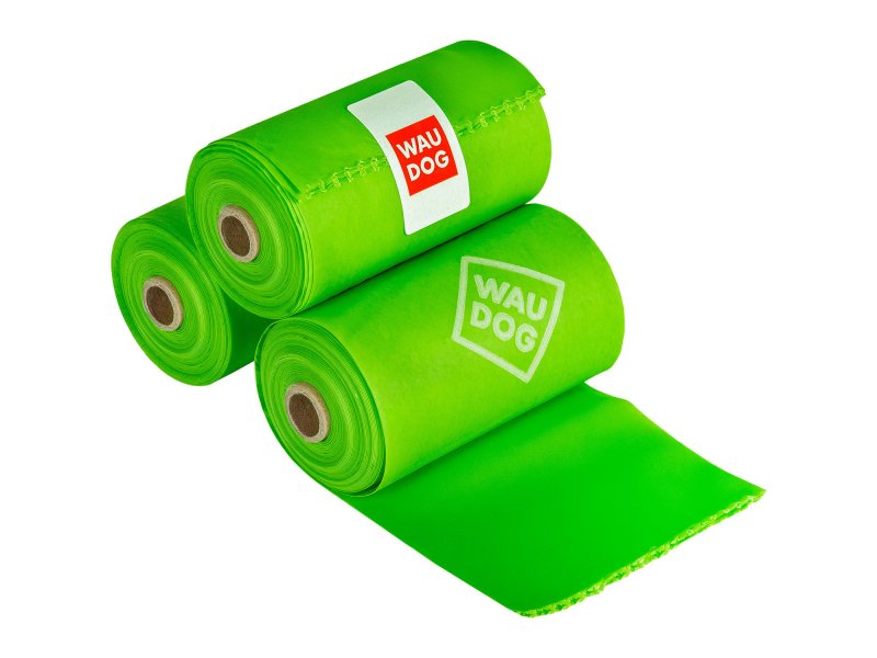 Біорозкладні пакети WAUDOG для прибирання за тваринами, 22х33 см, упаковка 3 рулони (45 шт)