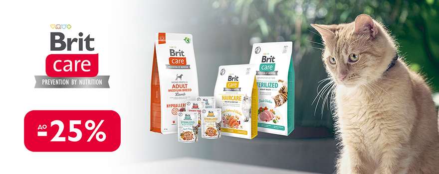 Порадуйте свого пухнастого друга якісним харчуванням і заощаджуйте до 25% на покупці кормів та ласощів для котів Brit Care: