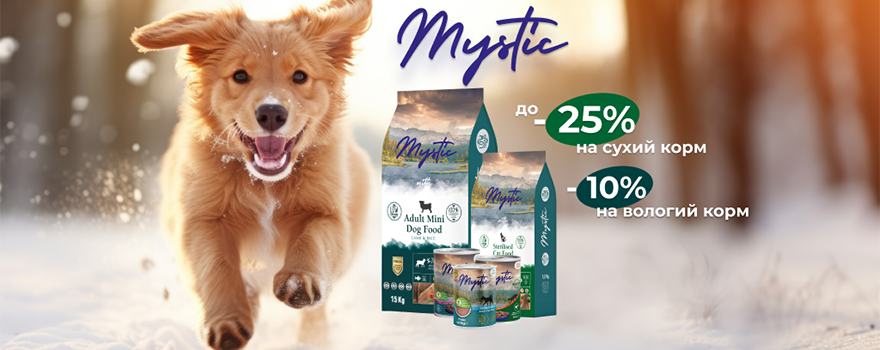 Увага, любителі домашніх тварин! Наш онлайн-магазин запускає ексклюзивну акцію: знижка до 15% на сухі та вологі корми Mystic для котів і собак! Порадуйте своїх улюбленців преміальним харчуванням, яке поєднує натуральні інгредієнти та турботу про здоров'я. Акція діє обмежений час — встигніть оформити замовлення на нашому сайті і забезпечте улюбленців найкращим за вигідною ціною: