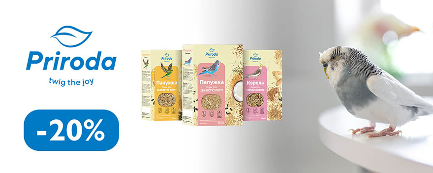 Акція на корм та ласощі для птахів Природа: знижка до 20%! Скористайтеся можливістю придбати високоякісний корм та ласощі Природа для птахів зі знижкою до 20%. Забезпечте своїх пернатих улюбленців збалансованим і смачним харчуванням за вигідною ціною!