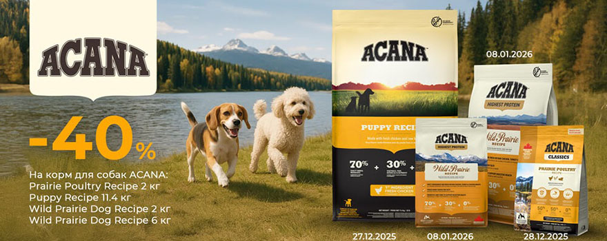 Не пропустіть унікальну можливість: знижка до 40% на сухі корми для собак! Забезпечте свого улюбленця якісним і смачним харчуванням, яке підтримує його здоров’я та енергію. Акція діє обмежений час, тож поспішайте зробити замовлення онлайн, щоб скористатися вигідною пропозицією!
