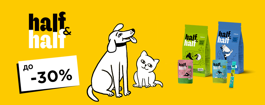 Побалуйте свого собаку чи кішку смачним і збалансованим харчуванням від Half&Half - зараз на корми та ласощі бренду діє знижка до 30%: