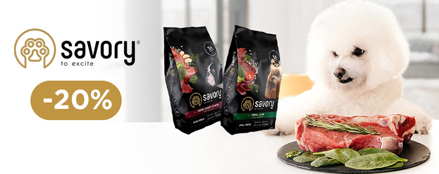 Акція на корм для собак Savory: знижка до 20%! Скористайтеся можливістю придбати високоякісний корм та ласощі Savory для собак зі знижкою до 20%. Забезпечте своєму улюбленцю смачне та корисне харчування преміум-класу за вигідною ціною!
