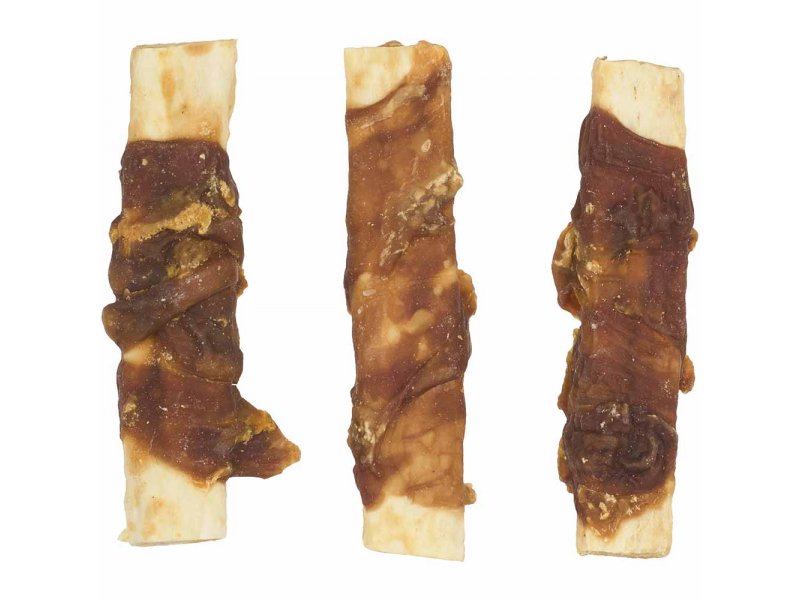 Склад: Сиром’ятна шкіра 68%, кролик 26,5%, крохмаль батату 1,75%, гліцерин 1,75%, рослинний білок 1,75%, сіль 0,25%.