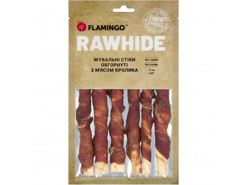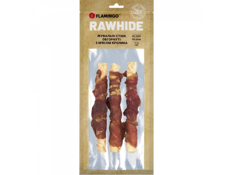 Уявіть ідеальний перекус для Вашої собаки – жувальні стіки обгорнуті ніжним м'ясом кролика від яких будь-який улюбленець просто не зможе відірватися! Ласощі Flamingo – це 100% натуральні інгредієнти, максимум користі та задоволення у кожному шматочку, а все тому, що ми знаємо секрет ідеального перекусу!Ласощі виготовляються методом делікатного сушіння за контрольованих температур, що дозволяє зберегти максимум поживних речовин, смаку та аромату. Завдяки цій технології закуски є натуральними, без додавання консервантів, з тривалим терміном зберігання. Жувальні ласощі Flamingo – це смачний додаток до раціону улюбленця, який допомагає зняти стрес та природним чином доглянути за ротовою порожниною, запобігти утворенню зубного каменю. Ідеальний вибір для щоденного частування з турботою про здоров’я!