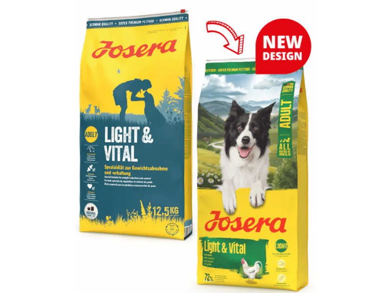 Складові Josera Light & Vital: Білок домашньої птиці, сушений 29,0% (з них курячий білок 40,0%); Горохове борошно; Ячмінь цільнозерновий; Рослинна клітковина; Бурякова клітковина; Білок домашньої птиці, гідролізований; Жир домашньої птиці; Борошно плодів ріжкового дерева; Дріжджі, частково гідролізовані; Мінерали; Трави, Фрукти; Висівки насіння подорожнику (Psyllium); Білок новозеландських зелених мідій (Pernacanaliculus), сушений.