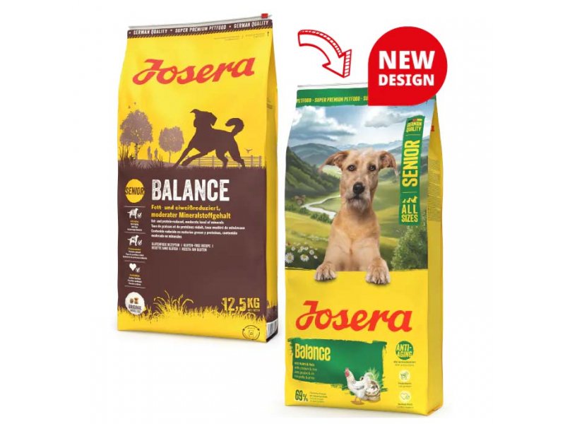 JOSERA Balance для наших собак у літах: особливий корм для жвавості і в поважному віці. Зменшений вміст протеїну та жиру допомагає розвантажити обмін речовин. Збалансована і легко засвоювана рецептура корму з цінними антиоксидантами може протистояти старінню. Тож, корм добре підходить для собак у літах.