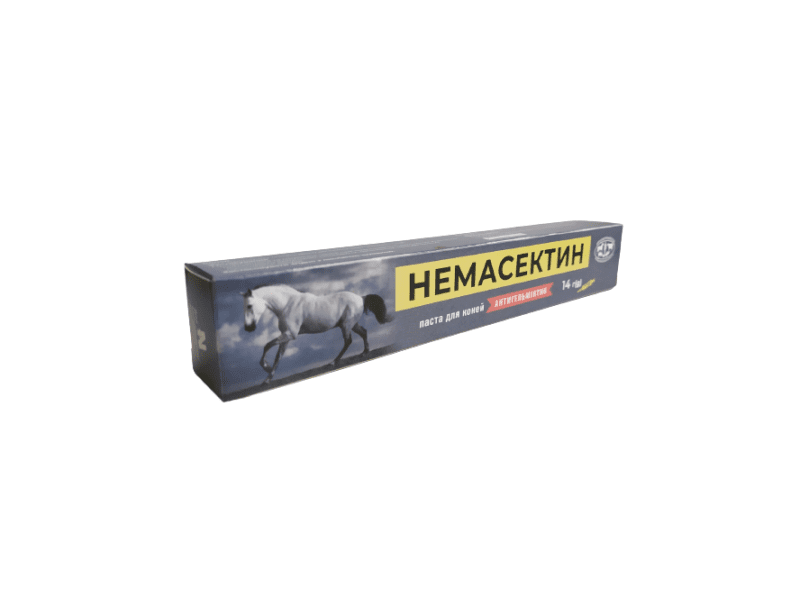 НЕМАСЕКТИН (паста для коней) – протипаразитарний препарат проти широкого спектру ендопаразитів (нематод шлунково-кишкового тракту, філяріат, личинок шлункових і носоглоткових ґедзів). Діюча речовина препарату, аверсектин С, впливає на величину потоку іонів хлору через мембрани нервових і м'язових клітин паразита. Основною мішенню є глютамат-чутливі хлорні канали, а також рецептори гама-аміномасляної кислоти. Зміна потоку іонів хлору порушує проведення нервових імпульсів, що приводить до паралічу і загибелі паразита. Препарат в організмі паразита посилює утворення нейромедіатора гама-аміномасляної кислоти (ГАМК), яка зв'язується зі спеціальними рецепторами нервових закінчень, блокуючи нервові імпульси, що викликає параліч і загибель паразита. Препарат малотоксичний для теплокровних тварин і в дозі, що рекомендується, не має сенсибілізуючої, ембріотоксичної, тератогенної і мутагенної дії.