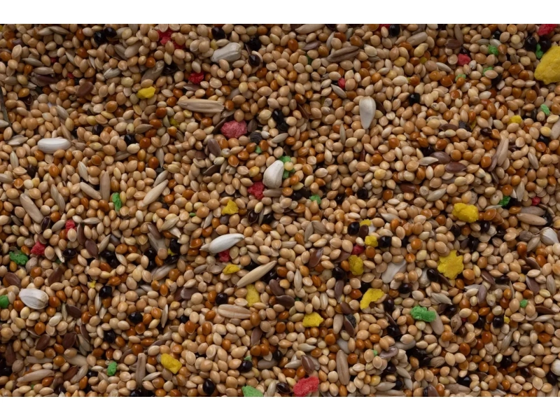 Склад: різноманітне просо, олійні насіння, канаркове насіння, овес, кольоровий бісквіт.