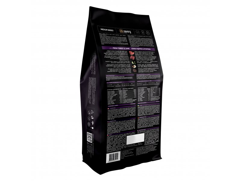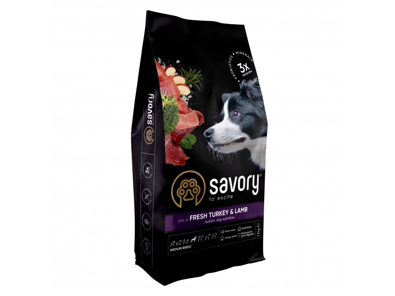 Сухий корм для собак середніх порід Savory містить 50% якісного м'яса індички та ягняти, суперфуд, цукіні, шпинат та помідори. Ці компоненти створені природою для завжди бадьорого і життєрадісного песика.