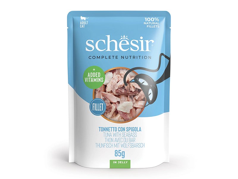 Консерви для котів Шезір тунець з морським окунем - відмінний спосіб урізноманітнити раціон вашого улюбленця чудовим рибним блюдом з високим гастрономічним статусом, що на 100% складається з натуральних інгредієнтів. У кожній пачці вологого корму Шезір тунець з морським окунем - тільки кращі шматочки філе риби в найніжнішому прозорому овочевому желе, приготовані на пару і оброблені вручну.