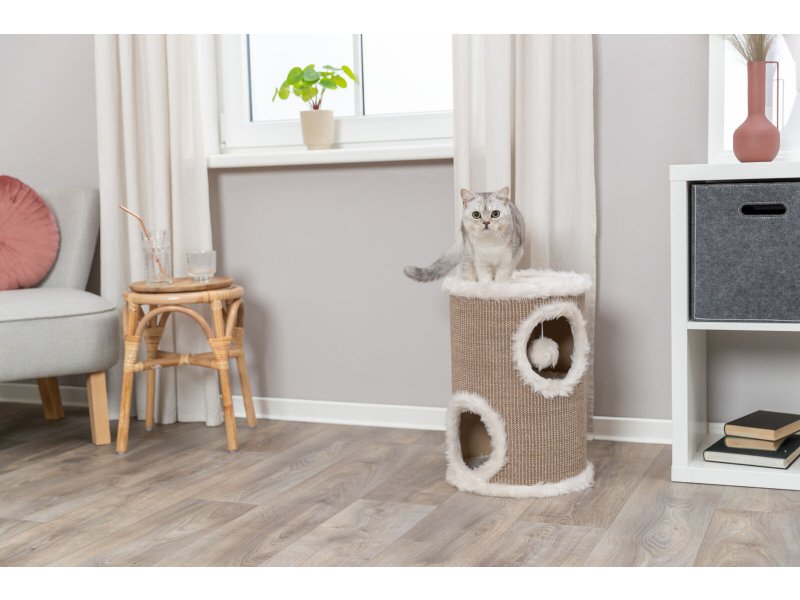 Trixie EdoardoTower для кумедних ігор в наздоганяння, хованки, точення кігтів, а також теплого та затишного відпочинку. Зовні – щільне плетіння із сизалевого волокна, усередині – м'який та теплий плюш.