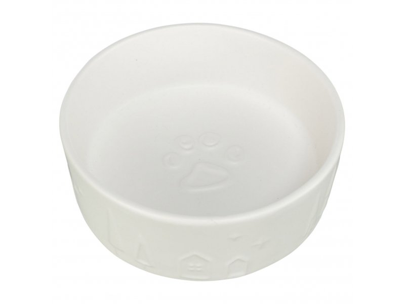 Миска виготовлена з міцної, безпечної для тварин кераміки, яка не вбирає запахи та легко очищається. Завдяки стійкій вазі та протиковзкому дну вона залишається на місці навіть під час активного прийому їжі. Поверхня гладка і гігієнічна, що особливо важливо для здорового харчування котів і собак.