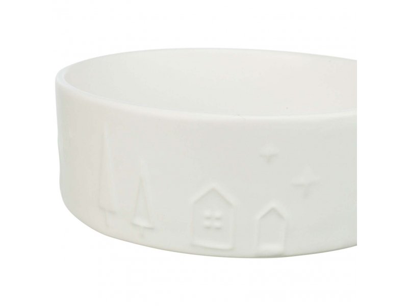 Дизайн миски виконаний у різдвяному стилі - із затишними зимовими мотивами. Вона відмінно впишеться в атмосферу вашого будинку напередодні Нового року і стане красивим елементом декору.