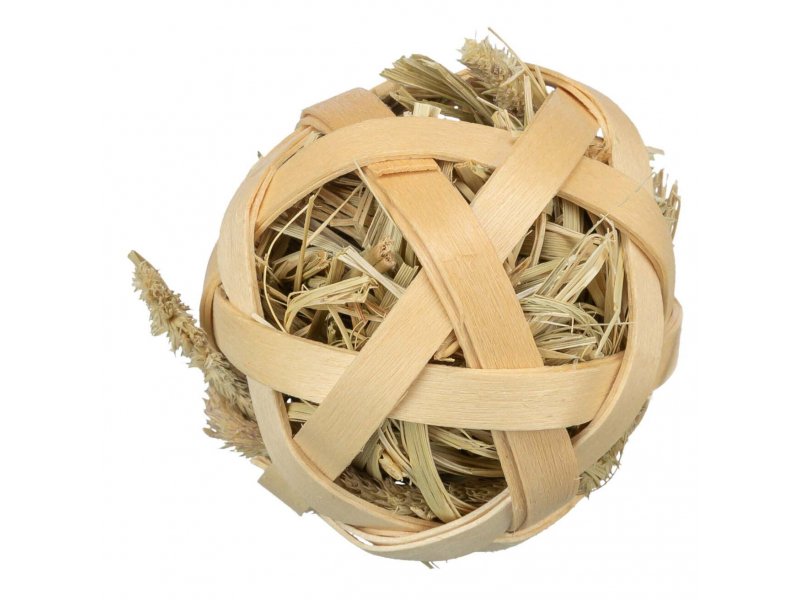 Ця кулька від Trixie являє собою натуральну та безпечну іграшку-частування для кроликів, морських свинок та інших дрібних гризунів. Виготовлена зі 100 % натуральних матеріалів і нафарширована сіном, що робить її одночасно іграшкою та ласощами.