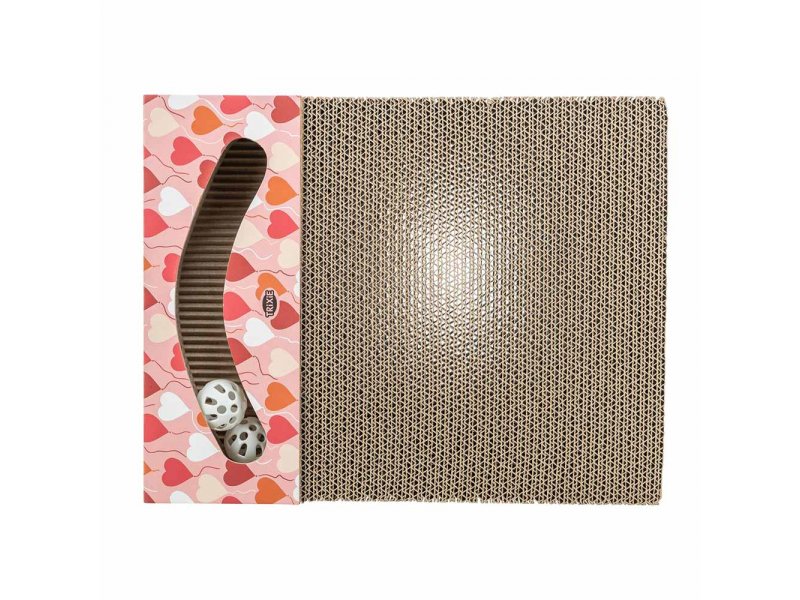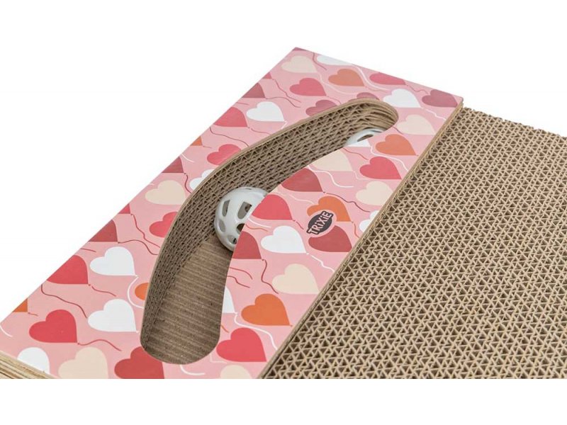 Когтеточка Trixie Valentine з картону з м'ячиками — святкова іграшка-кігтеточка до дня Святого Валентина, яка подарує вашому коту захоплююче місце для догляду за кігтями та активної гри. Ця лімітована серія виготовлена з міцного гофрованого картону, прикрашена теплим романтичним відтінком і оснащена двома вбудованими м'ячиками-іграшками, які стимулюють інтерес і рух. Всередині також присутня котяча м'ята (catnip), яка приваблює вихованця до гри і допомагає розвивати активність. Розмір когтеточки — 38 × 5 × 30 см, що робить її компактною, але функціональною частиною простору для відпочинку і розваг вашого улюбленця.