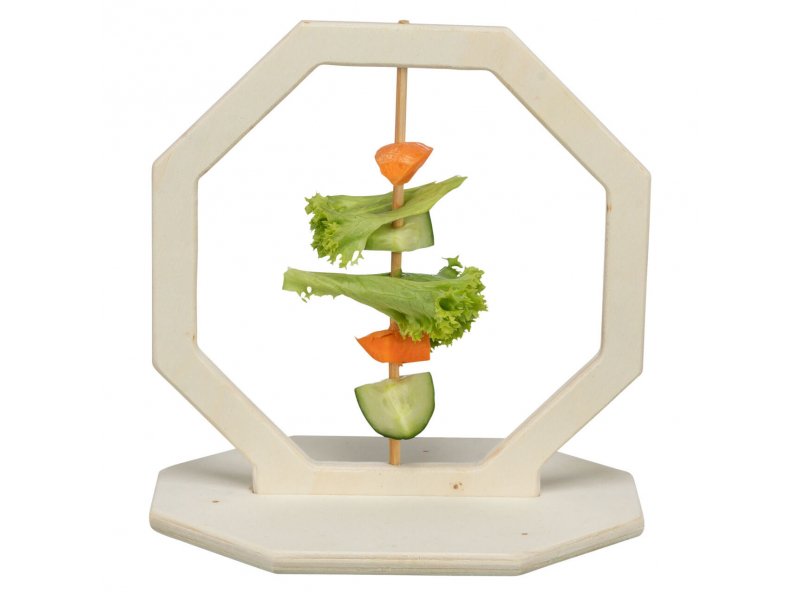 - Зручність установки: кільце і шпажки легко розміщуються всередині клітки, забезпечуючи доступ тварині до їжі та запобігаючи її забрудненню підстилкою.