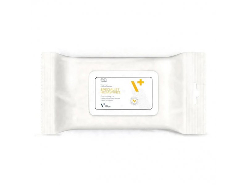 Vet Expert Specialist Hexawipes - це антибактеріальні та протигрибкові одноразові серветки нового покоління, створені спеціально для кішок і собак із чутливою, проблемною або схильною до запалень шкірою. Продукт ідеально підходить для локального очищення та гігієнічного догляду за окремими ділянками тіла, де найчастіше виникають бактеріальні або грибкові ураження.